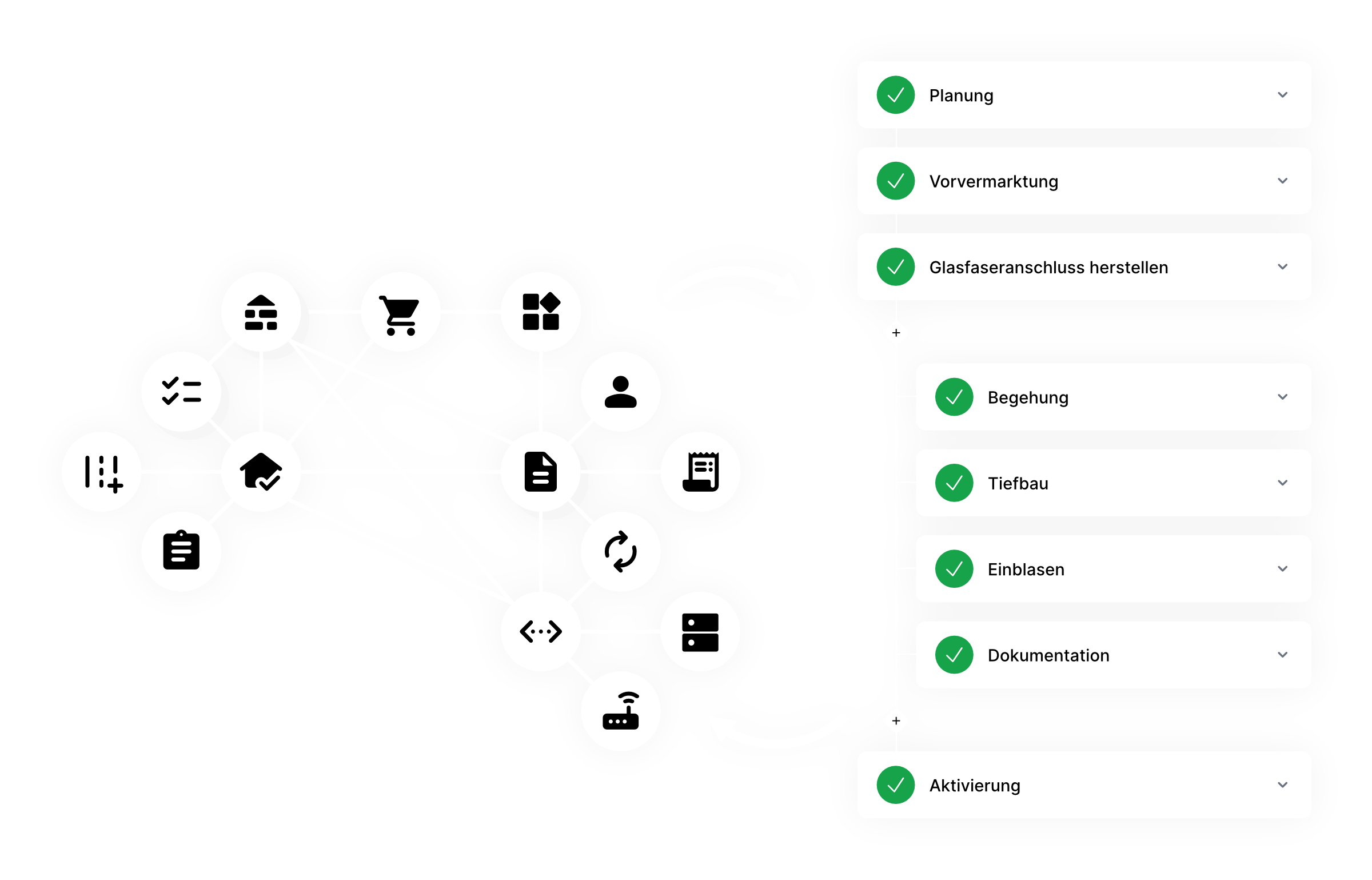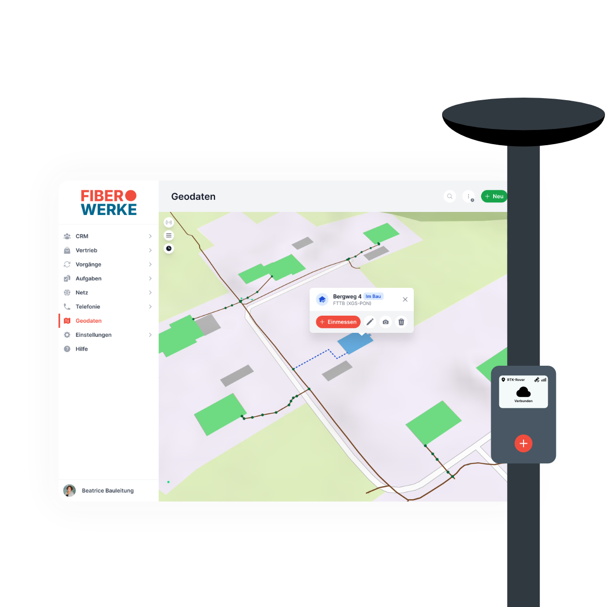 Ein IT-System, das Planung, Vertrieb, Bau und Betrieb von Glasfaser- und Telekommunikationsnetzen auf einer gemeinsamen Datenbasis zusammenführt.